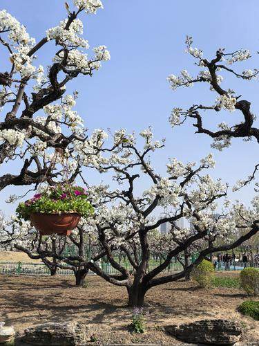 本次梨花展以“梨韵满绿城 花漾世纪园”为主题,共展出梨树约300株,包括树龄70 余年的砀山梨和鸭梨古梨树230 余株,以及今年新引种的秋月梨树60余株,精心打造室外梨花展区、梨树盆景展区、室内插花展区三大核心板块,全方位展现梨花生态之美与传统园艺艺术魅力。