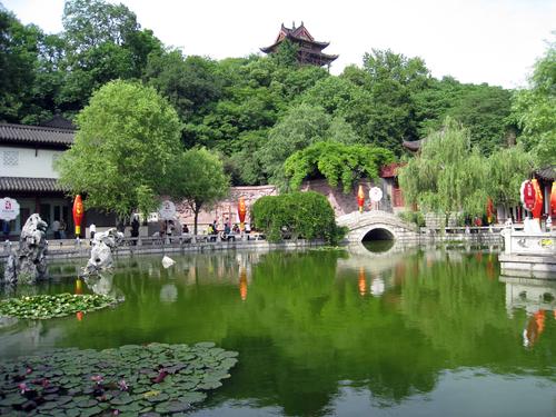 武汉黄鹤楼公园位于武昌蛇山,西抵司门口大桥头,南临阅马场及红楼,北临京广铁路干线,海拔平均高度85米。
