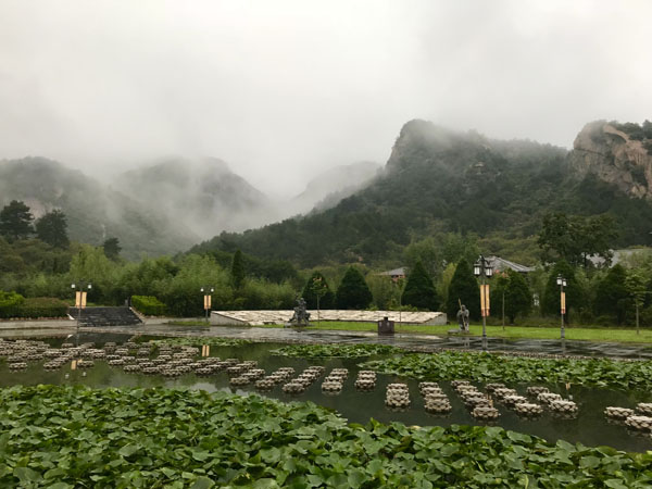 走在灵山山间,云雾缭绕,如果是刚下过雨,云雾凝而不散,远处的远处的青山翠石,红墙金瓦若隐若现,如同一张缥缈的山水画。