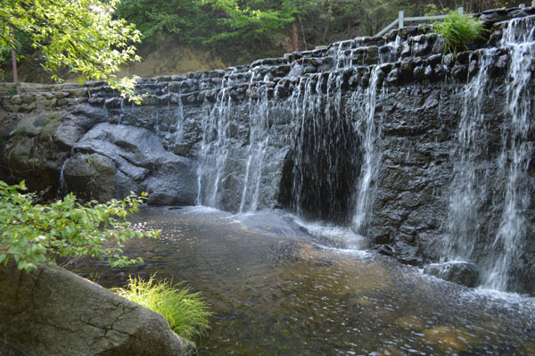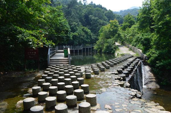 水是消夏避暑最不可缺少的,灵山除了青石板下流淌的蜿蜒溪水,还有一条瀑布,瀑布从山崖间飞泻而下,如同“观音下凡”一般,由此得名“观音瀑布”。瀑布飞驰而下,坠击在石板上,一瞬间激起千万水珠,如同晶珠一般散落在四周。
