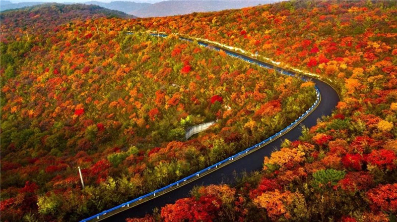 更有一条穿越万亩红叶海的赏红栈道,行走于上,身体被四周的红叶包裹着,仿佛进入了一条红叶“隧道”,是您放松身心,亲近自然的最佳场所。