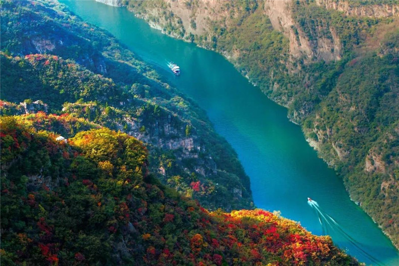 彼时,青天河处处洋溢着秋的气息,靓丽的红叶遍布所有山头,无论是漫步在峡谷中抬头仰望,还是乘坐豪华游船环顾群峰,层林尽染的景象都让人眼前一亮,不禁沉醉在这一抹秋色之中。