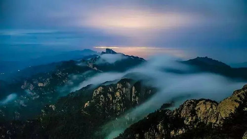 松涛云海,风吹过山林,发出一阵阵大海的波涛声,气势恢宏,波澜壮阔。