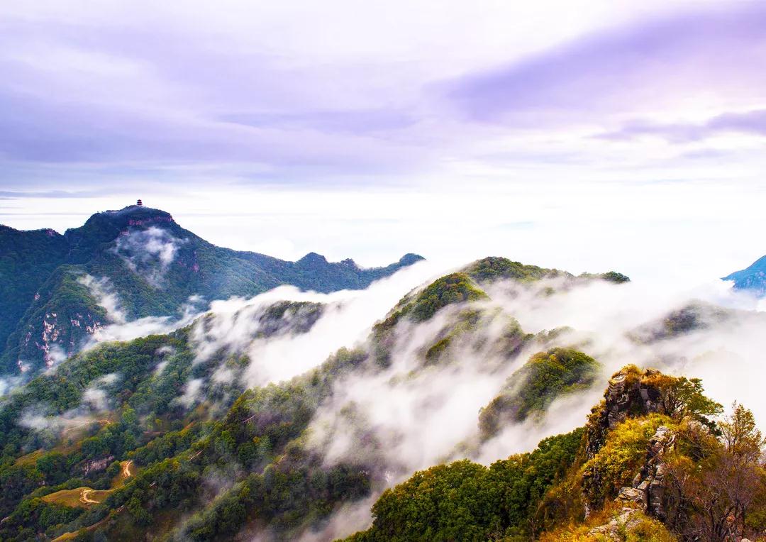 在经历了整个夏天的绿意盎然之后,王屋山的景色在此时开始变得丰富起来。层林尽染,五彩斑斓,云雾缭绕,美轮美奂。