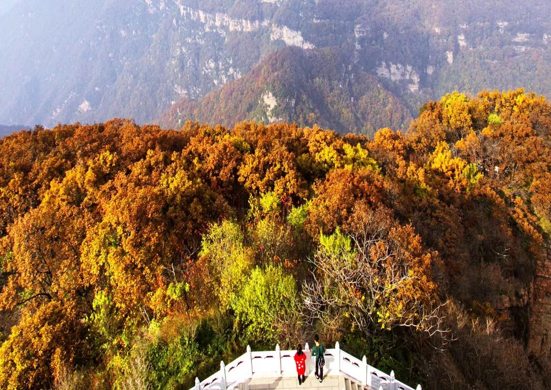 都说秋季的彩林是打翻的调色板,直到邂逅王屋山,这画面便扑面而来。纯净的蓝天下,橘红、金红、深黄……这是任何一种语言都描述不了美。无论是徒步穿越被彩林环绕的天坛神路,亦或是乘坐观可360°赏美景的王屋山观光索道,都能把这彩林仙境一览无余!