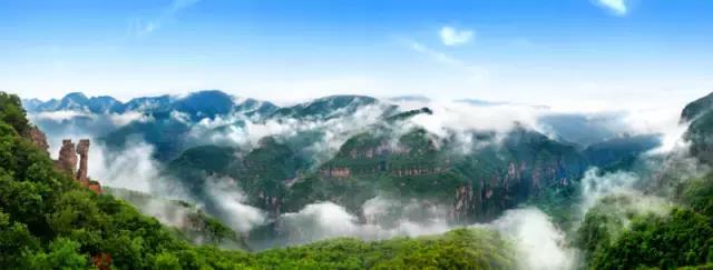 轻纱薄雾,随风而动,眨眼间不见了山峰,回眸,又一览无遗,远处山峦连绵起伏隐隐约约,迷迷蒙蒙的如同海市蜃楼一般神秘。