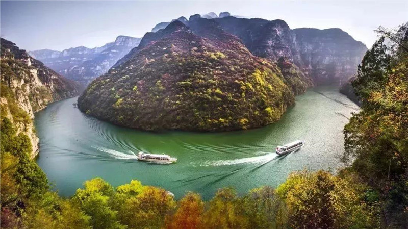 这里碧波荡漾,妩媚婉约,水随山势,百转千回;水天一色,两岸绿色掩映,湖内行船荡舟,舟移景异。