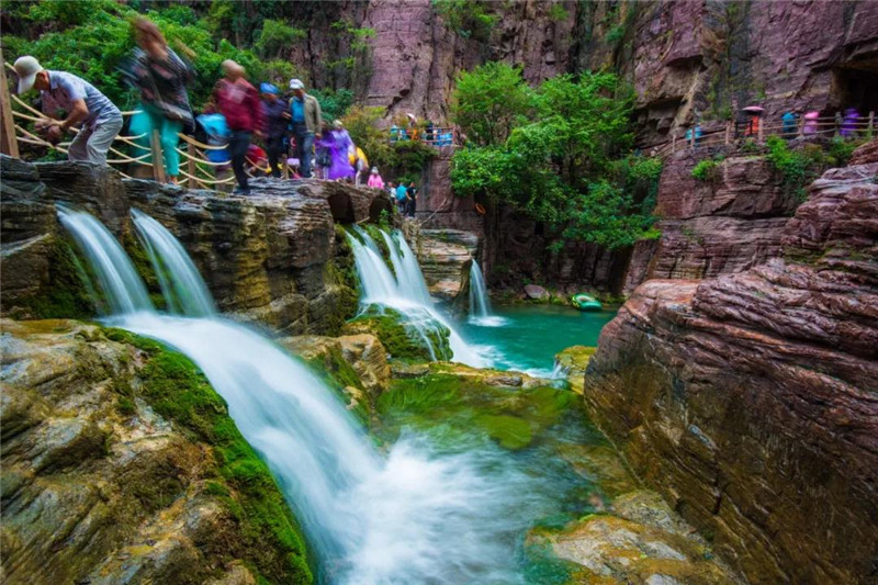 云台山红石峡是云台山景点的精华,重点推荐,游览所需要的大致时间约一个半小时左右,峡谷全长1500米,谷口南端有一狭窄的峡谷称为“一线天”,且有瀑高60余米的白龙瀑布,两侧高山耸立,恰似一个石阙,正好是云台山的西大门。