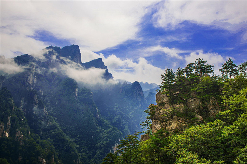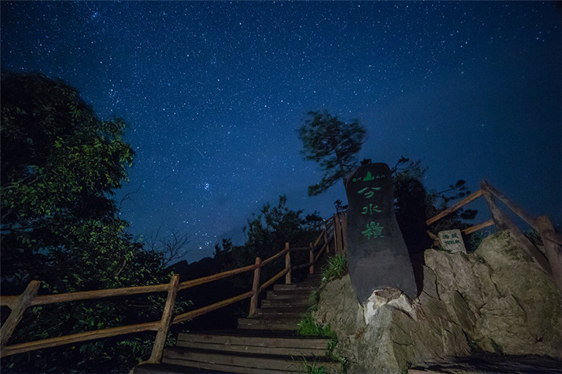 日月台——观看界岭日出的最佳位置。俗话说:一山 有四季,十里不同天。暖湿气流在上升的过程中与山上 的冷空气相遇并会形成地形雨,所以老界岭一阴就下雨 ,下雨就起雾,每当清晨或者雨后人们来到这里会感觉 如在云中漫步,如临仙境一般。