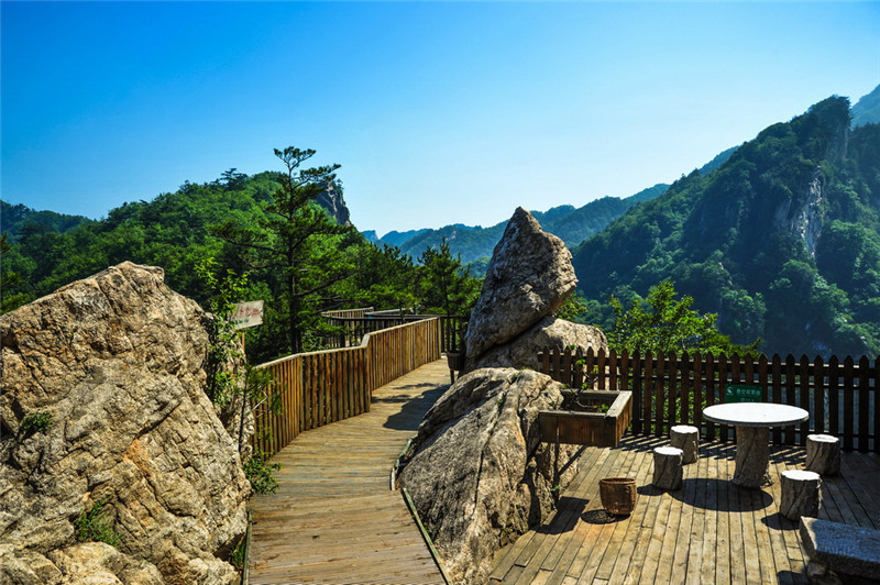水墨画观景台——雨过天晴后,大自然一片清新,对 面层峦叠嶂的山脉被云雾所笼罩,很像一副大型泼墨山 水画,十分壮观。在这里,观日出,赏落日!