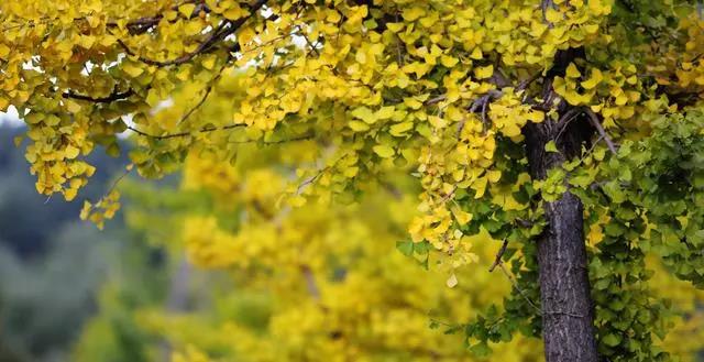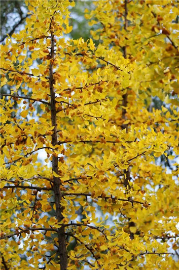 仔细一看还有满树的银杏果掩映其中。