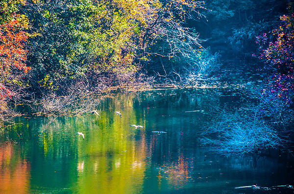 看了这些照片,你会感到我们走进了人间仙境九寨沟。太美了,没想到,这里竟然是大别山区新县卡房乡里的一处美景。(王天定文/图)