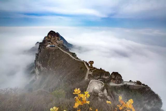 深秋里的轿顶山,从1686米的海拔往下看,云雾缭绕,如诗如画。