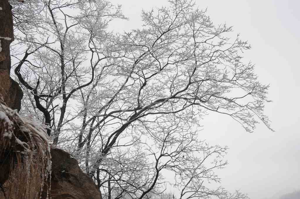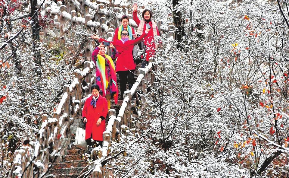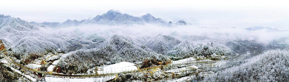 汝阳县山区迎来降雪。西泰山景区被白雪装扮得分外妖娆,如一幅精美绝伦的山水画。