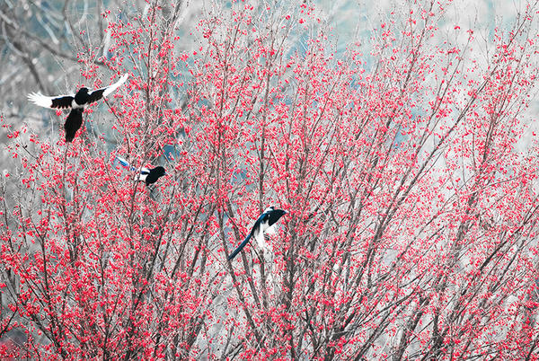 喜鹊闹枝头。
