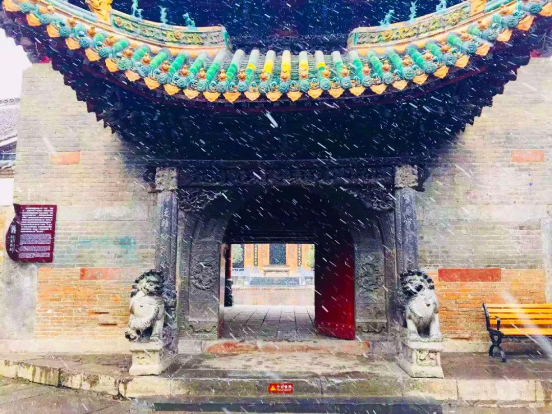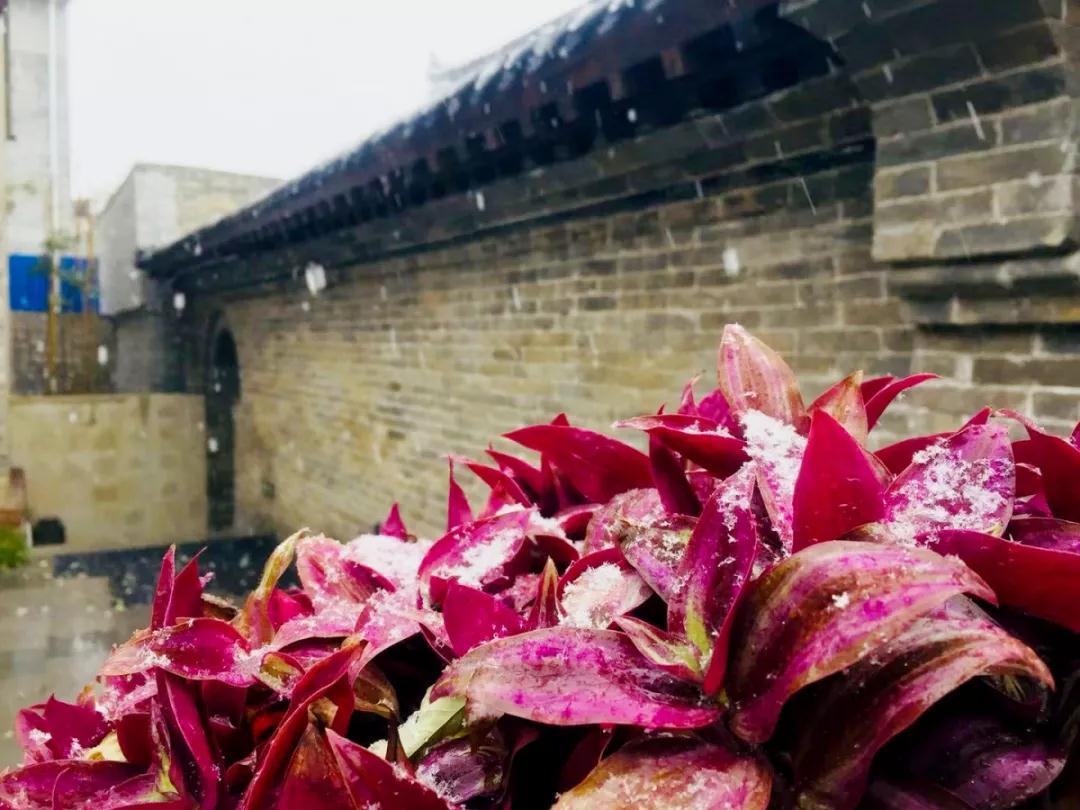慢慢的,铺满青石砖的地面地面长出了白色的“绒毛”,薄薄的雪覆在树干上,掩盖了峥嵘的岁月。