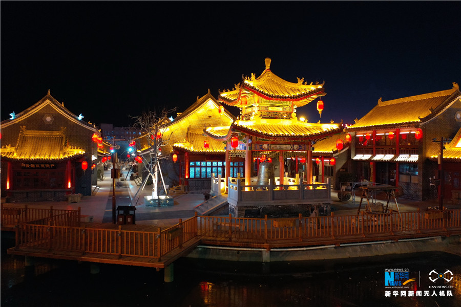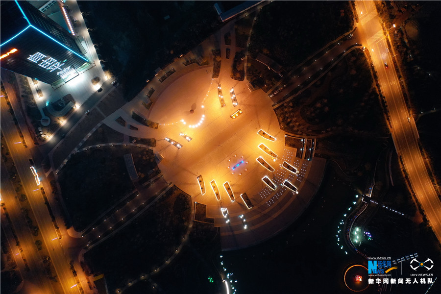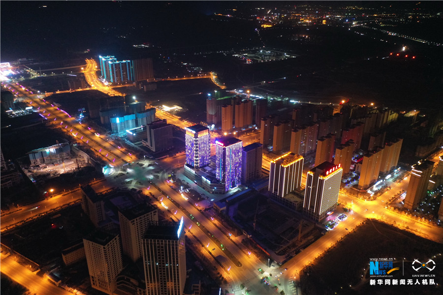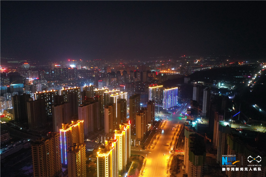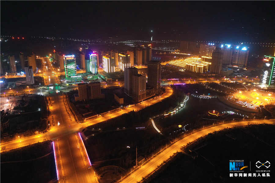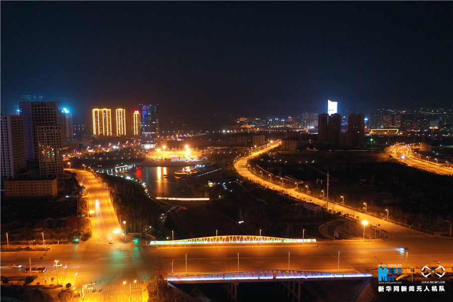 航拍下的三门峡夜色。
