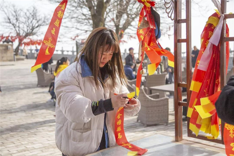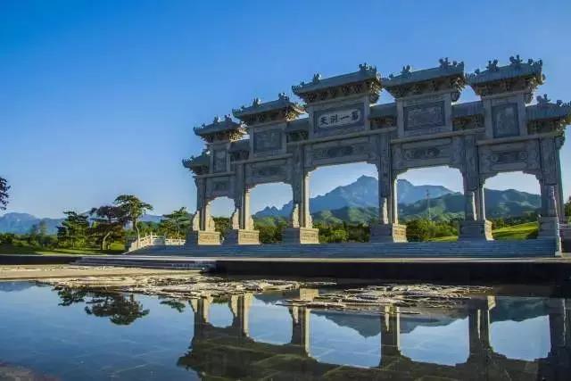 高耸入云的道境广场“第一洞天”石牌坊,在雕刻精美的五门六柱石牌坊下拥抱蓝天,展开双臂定格美好瞬间。