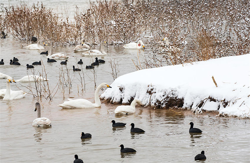 雪中天鹅湖鸟儿多。