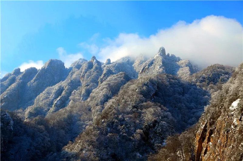 站立伏牛山主峰上,千岩万壑,飞龙走凤,远近高低,景色各异。