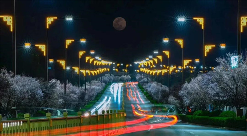 傍晚,美丽的小城笼罩在淡淡的清香里,朦胧中,万家灯火次第点燃。