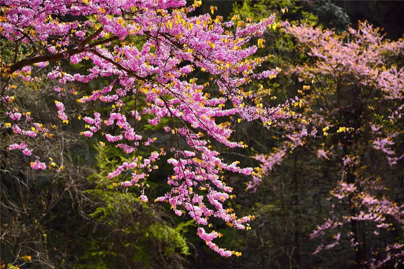 紫荆花代表着亲情,有着合家团圆、兄弟和睦的美好寓意,老君洞山上的紫荆花皆为野生,灵性十足,选择老君洞作为栖息地,八成是因为它的特质刚好符合了她“和睦”脾性吧。