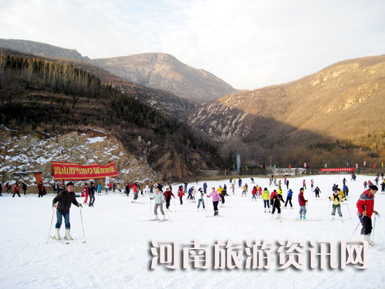 嵩山滑雪场位于中岳嵩山的太室山卢崖瀑布景区内,建成于2007年1月份。嵩山滑雪滑草场目前有一个标准滑道,一个U形滑道,长度约150米,另设有戏雪区。其雪上项目有滑雪、雪上飞碟、U波球等。从规模上来讲,属于一个比较小的滑雪场。
