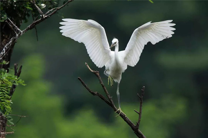 你是否见过蹁跹飞翔的鹭鸟?在西九华山白鹭湖中心,白鹭岛映入眼帘,细细观去,郁郁葱葱之中点缀了点点白色,那是白鹭的身影,些许喧闹中,偶然望见两只白鹭挺立在树顶对视,同时相互啼鸣,还伴随着独特的舞蹈,好似歌剧院中的两名引吭高歌的主唱。