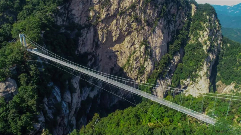 位于白云山的这座玻璃吊桥——九龙天桥,凌空飞越九龙大峡谷上方。