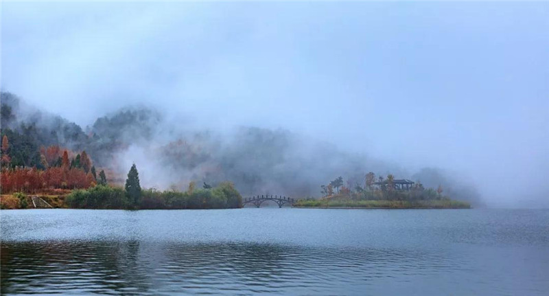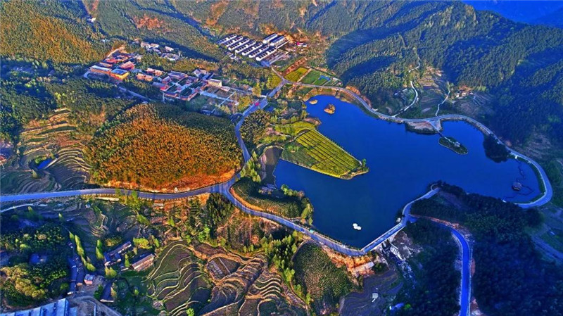 在豫南海拔最高的湖泊—滴翠湖。湖中水波粼粼,碧若翡翠,浮山掠影,尽收池底。