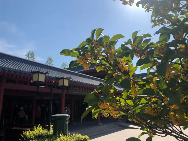 此时是桂花盛开的时节,少林景区的桂花已经完全盛开,空气中弥漫着醉人的花香,中国人喜爱桂花,赋予了美好吉祥的寓意。