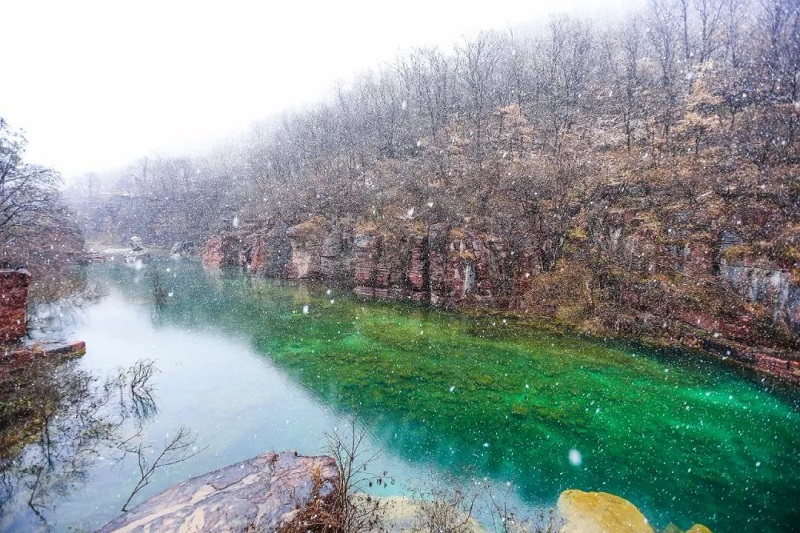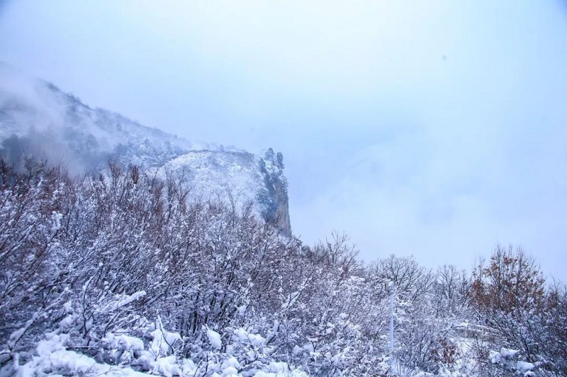 雪花似鹅毛一般,纷纷扬扬,晶莹如玉、洁白无瑕,此时此刻的云台山,成为了诗句中的美景。