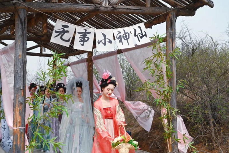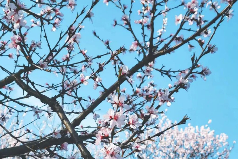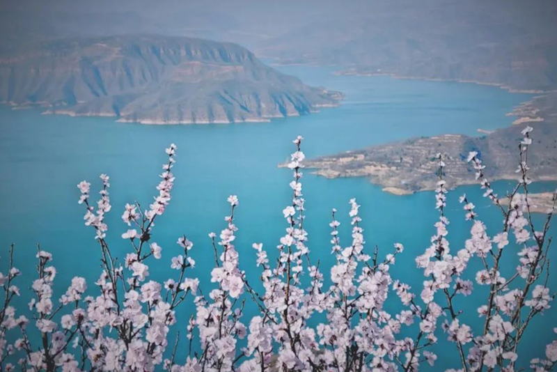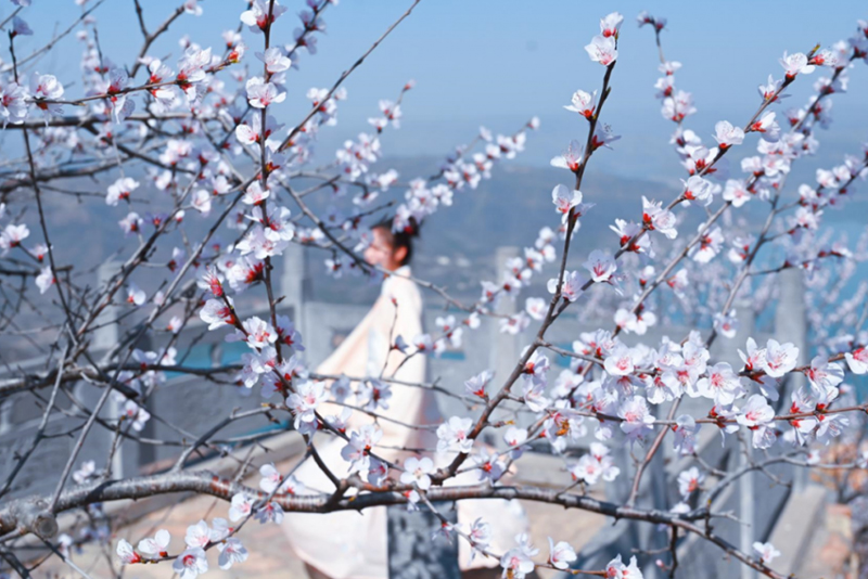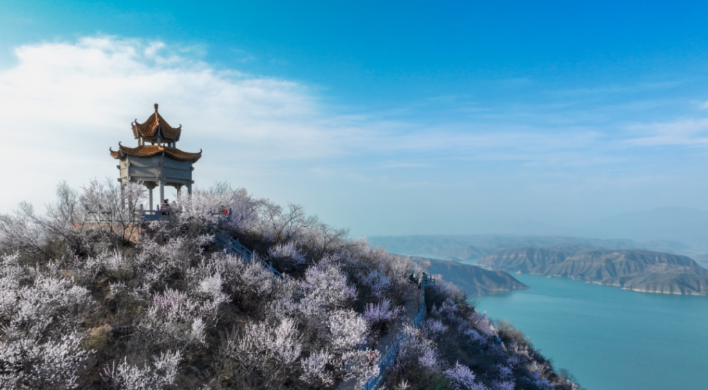在河南洛阳新安县的黄河南岸,绵延数十里的山桃竞相绽放,或粉红,或雪白,给大山披上新衣,从空中俯瞰碧波伴起那黄河水蜿蜒曲折,与山桃林相互映衬,山川美景,尽收眼底,游客们漫步在林中,享受着春天的美好惬意。