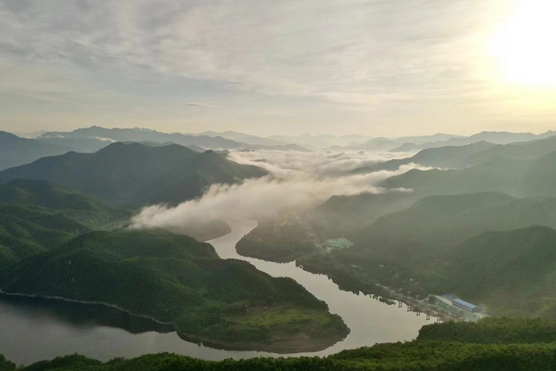 石门湖秀水湾,在晨光薄雾中如梦如幻