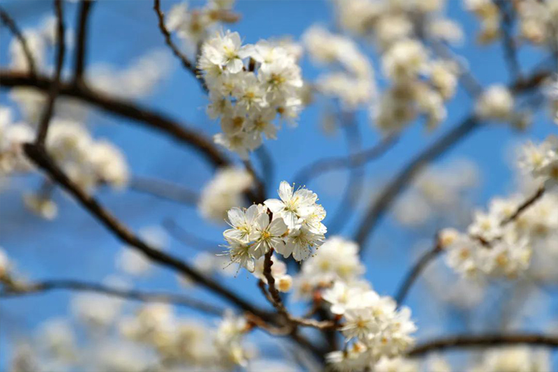 花朵初绽枝头,轻声絮语,鸟鸣啁啾,清风拂树,奏响春的典雅旋律。