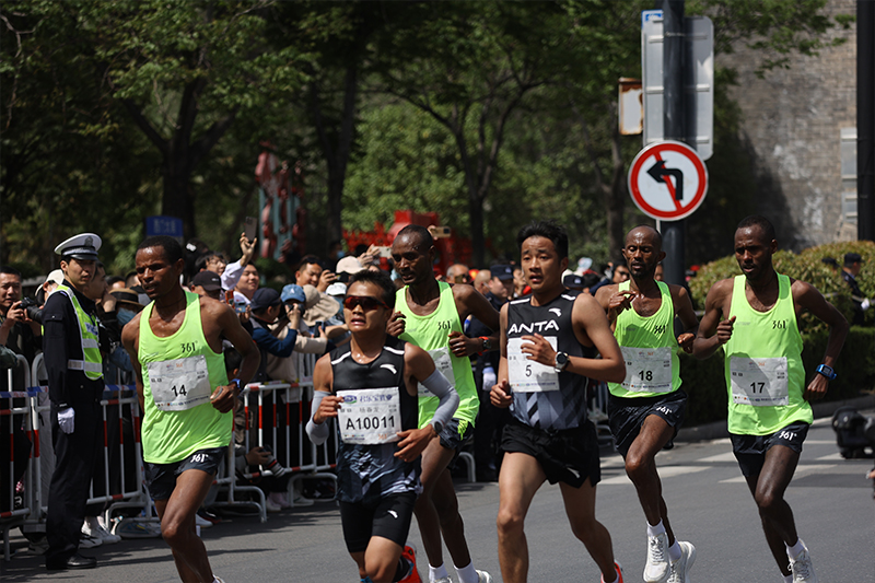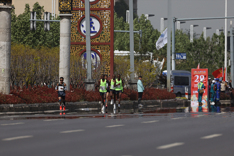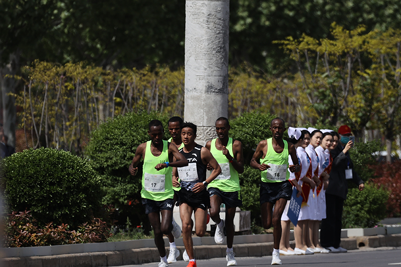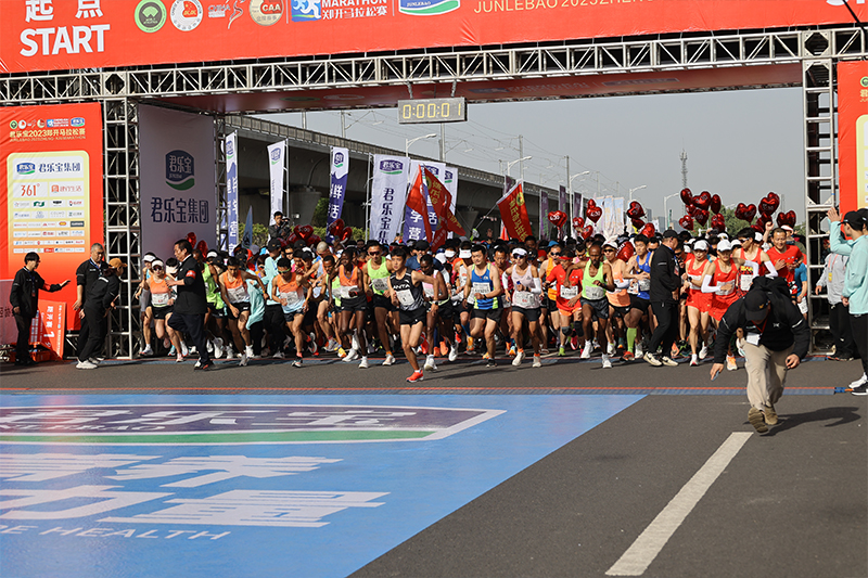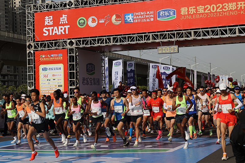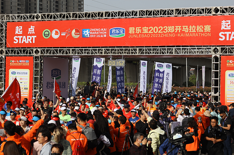4月16日8点30分,2023郑开马拉松赛在郑东新区郑开大道白沙服务区鸣枪开跑,终点为开封市龙亭公园。图为比赛现场。