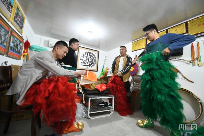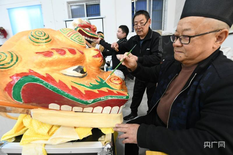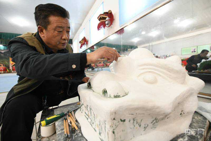 央广网周口4月19日消息(记者 彭华 通讯员 梁照曾)近日,河南项城查拳大师李金玉的徒弟李宗杰为“狮子大战鼓”表演所用狮头上色。据了解,项城市水寨回族武术狮子会有幸参加第九届全省民族运动会表演,他们将派出16人的鼓锣舞狮团队,带两面鼓演出,拿出真功夫,一展“狮子大战鼓”的风采。
