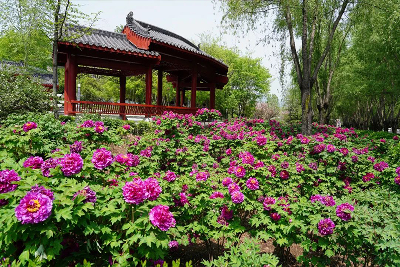 鸡冠洞高山牡丹园位于景区中心游览区内,平均海拔1108.5米,占地面积101亩,共栽植魏紫、姚黄、二乔、洛阳红等18类60个品种10万株牡丹。