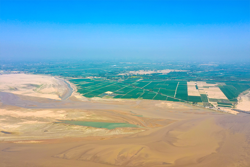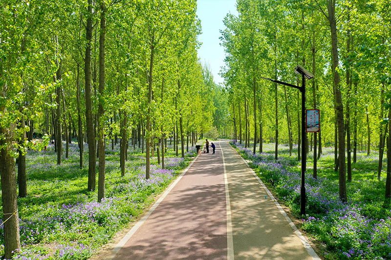 4月18日,开封黄河岸边成片的生态林带郁郁葱葱,“绿廊”一望无际,美景怡人,成为市民和游客共享健康美好生活的热门场地。