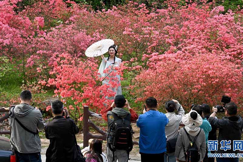 4月19日,洛阳市摄影家协会组织百余名摄影师到西泰山摄影采风。据了解,汝阳县西泰山杜鹃花有深红、淡红、玫瑰红、粉白等多种颜色,盛花期一般在4月22日至5月初。