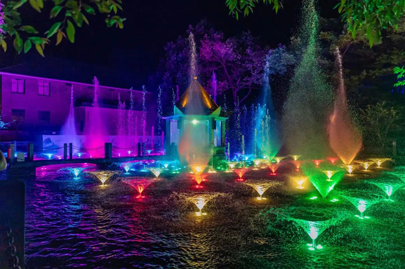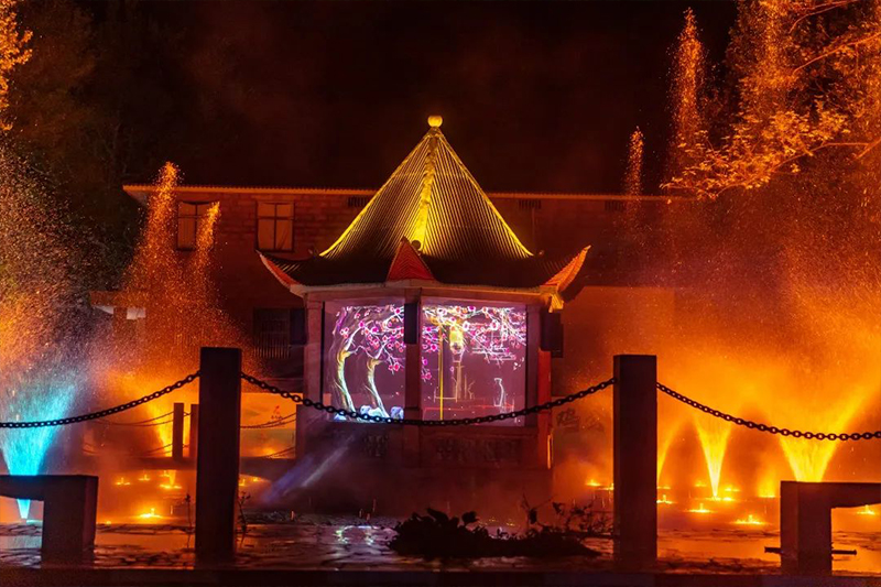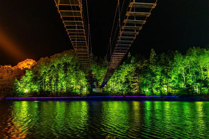 各色的灯光充分运用光线的强弱变幻、色彩搭配、明暗照射等方式,简单又多彩的营造出或高大或平和、或庄严或素净、或开阔或恢宏的大美气概。天上的星,地上的灯,交相辉映,装点了鸡公山的景色,精彩呈现了文物建筑与艺术的完美结合。打造奇妙的夜景观,使景观物(建筑物、植物等)在夜间重焕光彩。