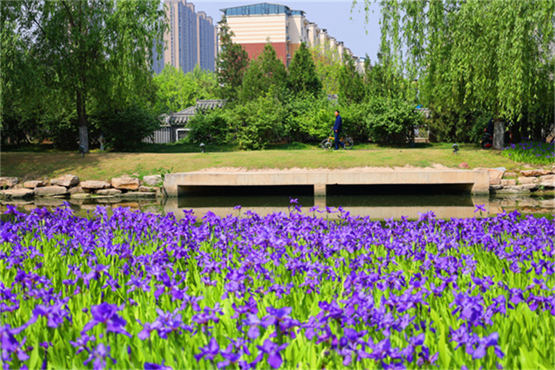 河南开封:鸢尾花开美景如画