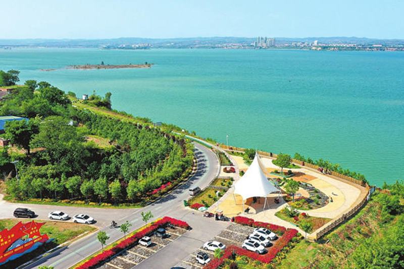 4月25日,洛阳市孟津区白鹤镇的黄河西霞院水库在蓝天白云的映衬下,显得更加碧绿清澈。近年来,该区始终坚持生态优先理念,持续筑牢生态屏障,全域改善生态“颜值”。郑占波 吕云鹏 摄