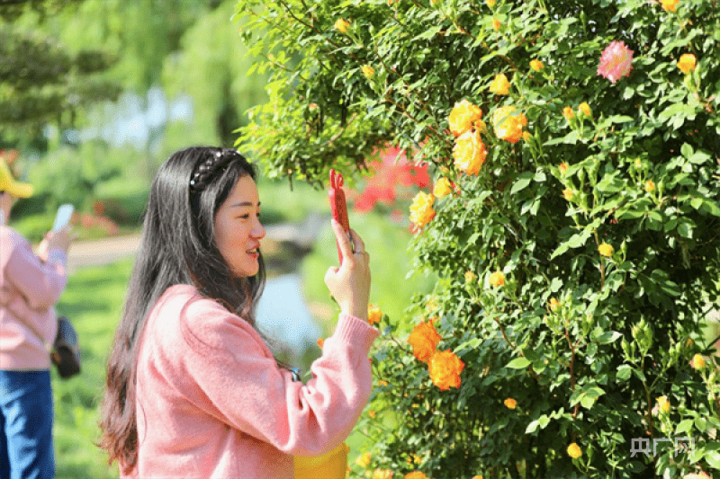 游客在月季花前驻足拍照(央广网发 程海舟 摄)