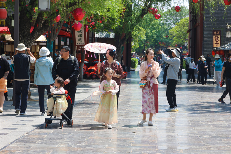 4月27日,“五一“小长假将至,开封旅游热度逐增,游客畅游古城,尽情感受古城魅力。