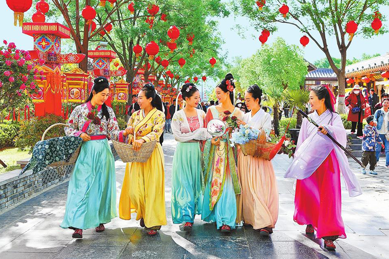 5月2日,开封清明上河园景区,民俗表演轮番上演。“五一”假期,人们用多种方式享受休闲时光。