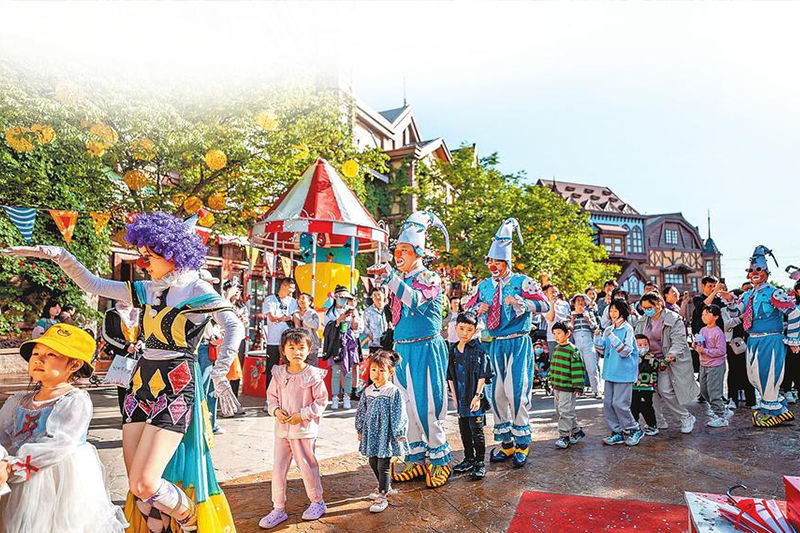 4月30日,郑州方特旅游度假区游人如织,秩序井然。景区推出的篝火狂欢派对、动漫嘉宾见面会、无人机表演、主题巡游等一系列精彩演出,为游客送上一场丰富多彩的文旅“大餐”。本报记者 聂冬晗 摄