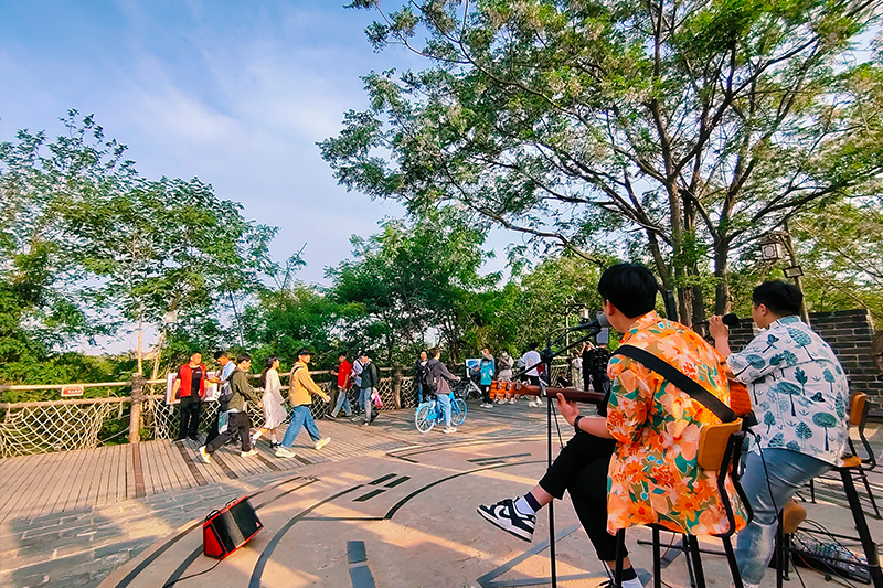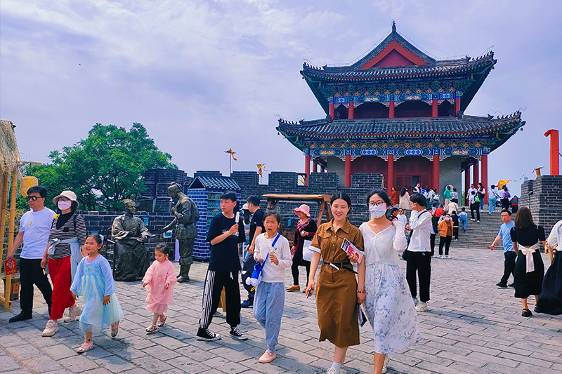 “五一”假期,开封城墙景区推出了各种特色活动,吸引了众多游客前来游览打卡。