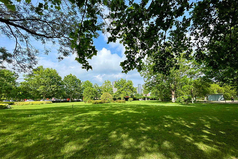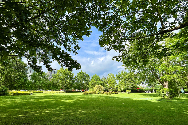 5月5日,开封云开日出、阳光灿烂。公园里树影斑驳,与蓝天白云相映成趣,构成一幅美丽的春日画卷。