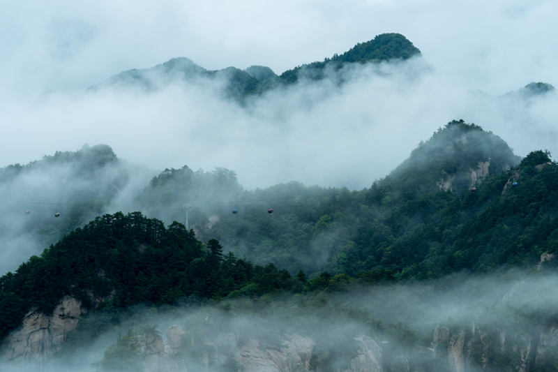 趁着雨后登峰巅,白茫茫的云海变幻莫测,风吹云荡,起伏不定,如同置身仙境一般。